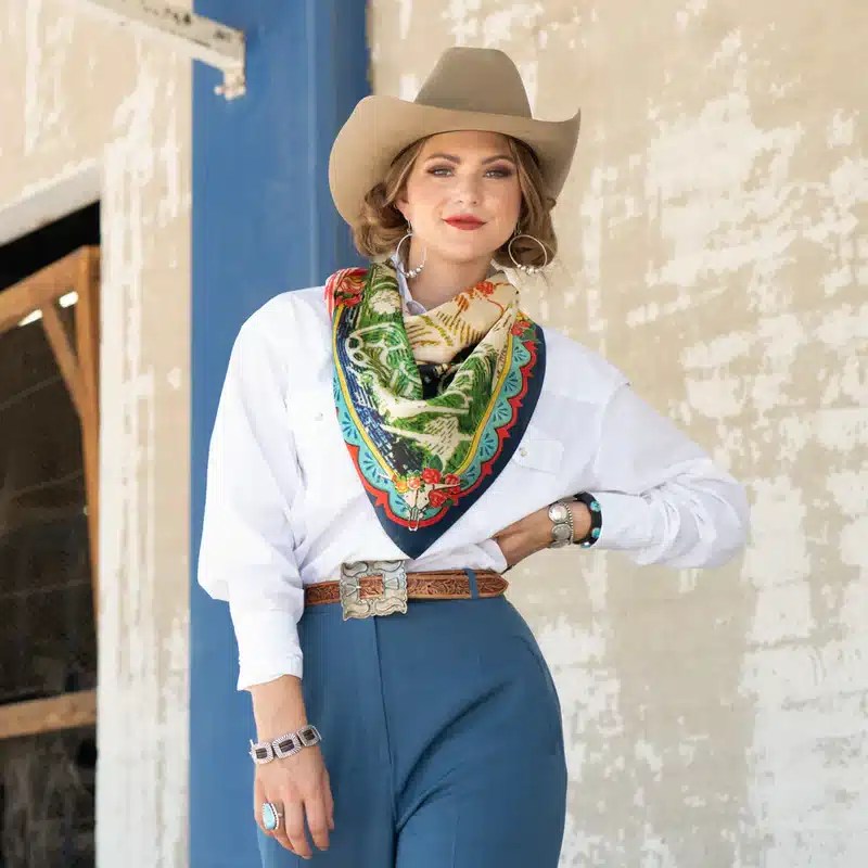 Vintage cactus and bright floral accents make for a fun splash of color for any scarf or wild rag lover!