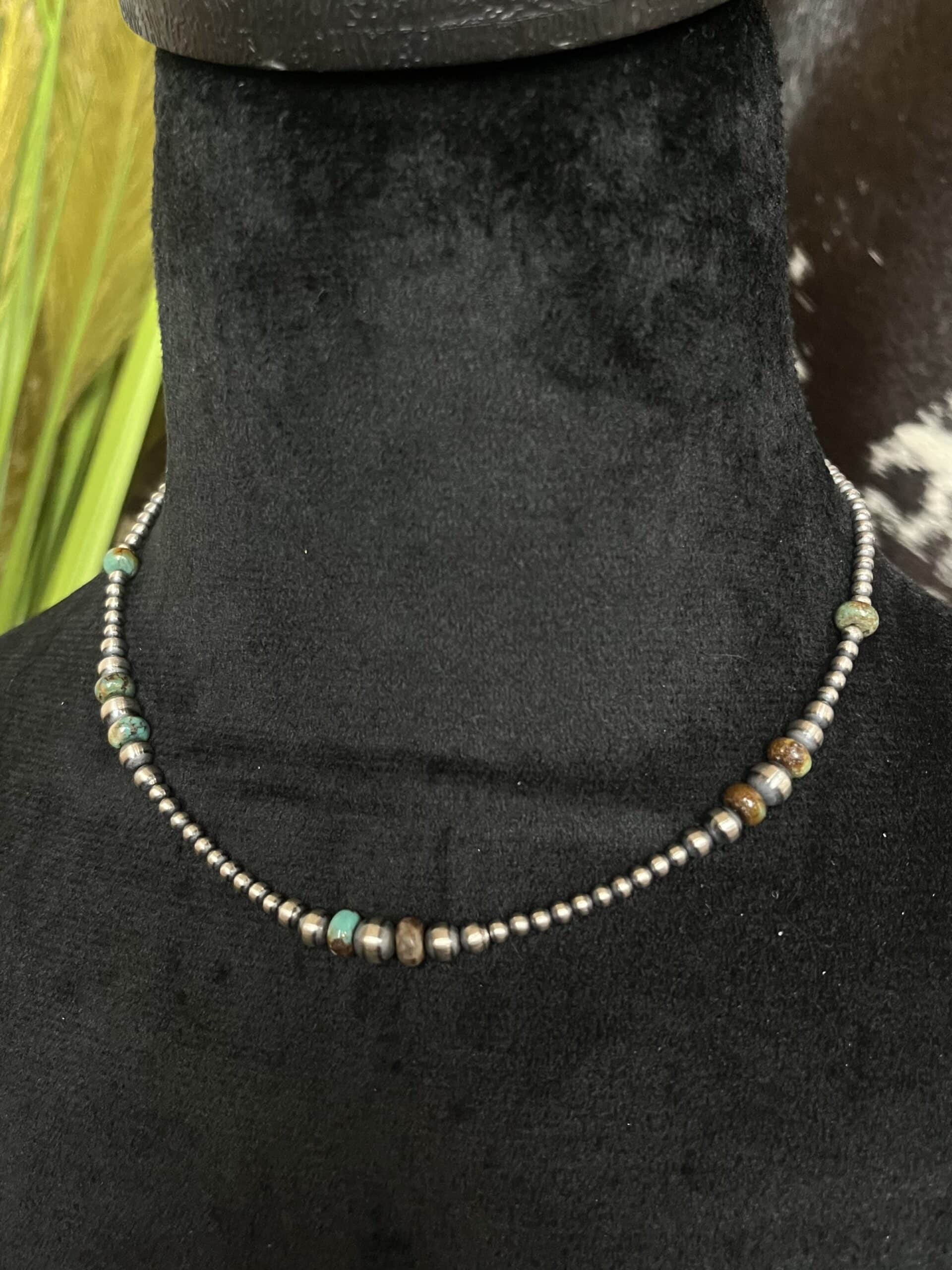 Navajo Pearls are essential. Navajo Pearls are made by the Native American Navajo artist, which consist of sterling silver pearls that are strung together on silver wire and have a sturdy but stylish clasp. We have a variety of pearls in different lengths and different millimeter sizes. Select the length and pearl size you would like before adding to cart to see a photo of that necklace. These sterling silver pearls go with everything and can be worn on their own or with a pendant. They look amazing with a single strand but make such a statement when wearing a few sizes at once. These will look great through all seasons!